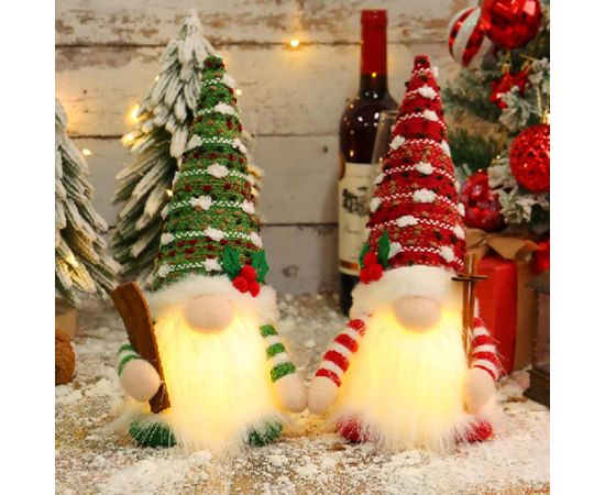 საახალწლო რბილი სათამაშო გნომი ნაძვის ხის ქუდით 30სმ განათებით C25TJ018