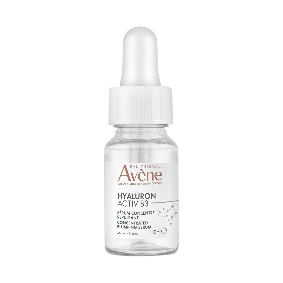 Avène Hyaluron Activ B3 შრატი ზემოქმედებს კანის დაბერების მიზეზებზე, ასტიმულირებს რეგენერაციას და ამცირებს ნაოჭებს. შეიცავს 6% ნიაცინამიდს (ვიტამინი B3) და 1,5% ჰიალურონის მჟავას, რომლებიც ატენიანებს, ამკვრივებს და ზრდის კანის ელასტიურობას მყისიერი ეფექტით. შესაფერისია ყველა ტიპის, მათ შორის მგრძნობიარე კანისთვის. 94% ბუნებრივი წარმოშობის, სუნის გარეშე და დერმატოლოგიურად შემოწმებული.