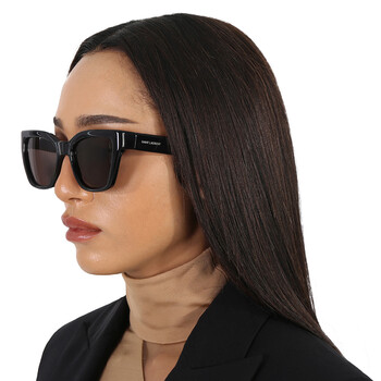 Saint Laurent Sunglasses. Series number: SL 641. Color code: 001. Shape: Cat Eye. Lens Width: 52 mm. Lens Bridge: 20 mm. Arm Length: 145 mm. 100% UV protection. Non-Polarized. Frame Material: Plastic. Frame Color: Black. Lenses Type: Black. Rim Style: Full-Rim. UPC/EAN code: 889652453545. Saint Laurent Black Cat Eye Ladies Sunglasses SL 641 001 52.