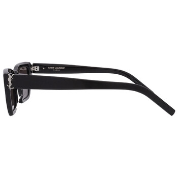 Saint Laurent Sunglasses. Series number: SL M127-F. Color code: 001. Shape: Cat Eye. Lens Width: 53 mm. Lens Bridge: 20 mm. Arm Length: 145 mm. 100% UV protection. Non-Polarized. Frame Material: Recycled Acetate. Frame Color: Black. Lenses Type: Black. Rim Style: Full-Rim. UPC/EAN code: 889652454009. Saint Laurent Black Cat Eye Ladies Sunglasses SL M127-F 001 53.