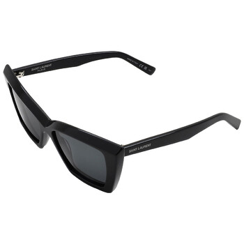 Saint Laurent Sunglasses. Series number: SL 657. Color code: 001. Shape: Cat Eye. Lens Width: 54 mm. Lens Bridge: 16 mm. Arm Length: 140 mm. 100% UV protection. Non-Polarized. Frame Material: Recycled Acetate. Frame Color: Black. Lenses Type: Dark Grey. Rim Style: Full-Rim. UPC/EAN code: 889652484976. Saint Laurent Dark Grey Cat Eye Ladies Sunglasses SL 657 001 54.