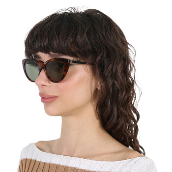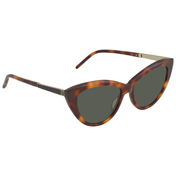 Saint Laurent Sunglasses. Series number: SL M81. Color code: 003. Shape: Cat Eye. Lens Width: 55 mm. Lens Bridge: 16 mm. Arm Length: 145 mm. 100% UV protection. Non-Polarized. Frame Material: Plastic. Frame Color: Havana. Lenses Type: Green. Rim Style: Full-Rim. UPC/EAN code: 889652328577. Saint Laurent Green Cat Eye Ladies Sunglasses SL M81 003 55.