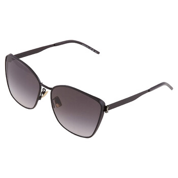 Saint Laurent Sunglasses. Series number: SL M98. Color code: 002. Shape: Oversized. Lens Width: 62 mm. Lens Bridge: 17 mm. Arm Length: 145 mm. 100% UV protection. Non-Polarized. Frame Material: Metal. Frame Color: Black. Lenses Type: Grey Gradient. Rim Style: Full-Rim. UPC/EAN code: 889652387246. Saint Laurent Grey Gradient Oversized Ladies Sunglasses SL M98 002 62.