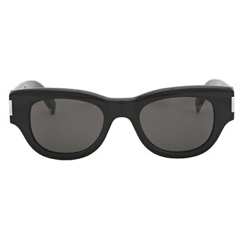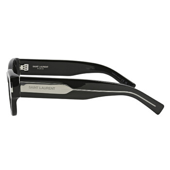 Saint Laurent Sunglasses. Series number: SL 573. Color code: 001. Shape: Square. Lens Width: 49 mm. Lens Bridge: 21 mm. Arm Length: 145 mm. 100% UV protection. Non-Polarized. Frame Material: Recycled Acetate. Frame Color: Black. Lenses Type: Grey. Rim Style: Full-Rim. UPC/EAN code: 889652420059. Saint Laurent Grey Square Ladies Sunglasses SL 573 001 49.