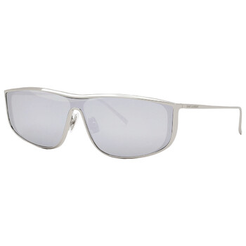 Saint Laurent Sunglasses. Series number: SL 605 LUNA. Color code: 003. Shape: Shield. Lens Width: 135 mm. Lens Bridge: 0 mm. Arm Length: 145 mm. 100% UV protection. Non-Polarized. Frame Material: Metal. Frame Color: Silver. Lenses Type: Silver. Rim Style: Full-Rim. UPC/EAN code: 889652442372. Saint Laurent Silver Shield Unisex Sunglasses SL 605 LUNA 003 135.