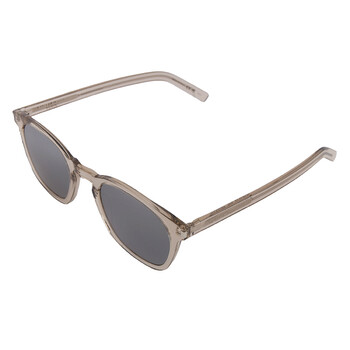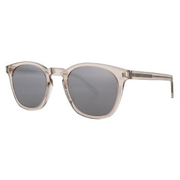 Saint Laurent Sunglasses. Series number: SL 28 SLIM. Color code: 006. Shape: Square. Lens Width: 49 mm. Lens Bridge: 23 mm. Arm Length: 150 mm. 100% UV protection. Non-Polarized. Frame Material: Acetate. Frame Color: Beige. Lenses Type: Silver. Rim Style: Full-Rim. UPC/EAN code: 889652264967. Saint Laurent Silver Square Unisex Sunglasses SL 28 SLIM 006 49.