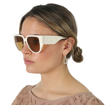 Salvatore Ferragamo Sunglasses. Series number: SF1088SE. Color code: 103. Shape: Browline. Lens Width: 57 mm. Lens Bridge: 16 mm. Arm Length: 140 mm. 100% UV protection. Non-Polarized. Frame Material: Plastic. Frame Color: Ivory. Lenses Type: Amber. Rim Style: Full-Rim. UPC/EAN code: 886895586863. Salvatore Ferragamo Amber Browline Ladies Sunglasses SF1088SE 103 57.