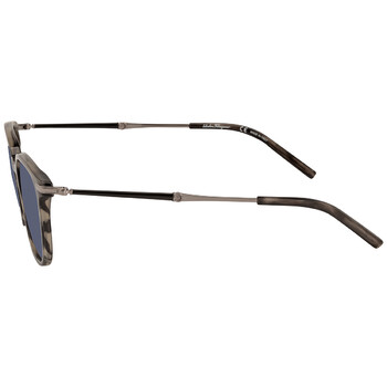 Salvatore Ferragamo Sunglasses. Series number: SF1015S. Color code: 003. Shape: Square. Lens Width: 52 mm. Lens Bridge: 19 mm. Arm Length: 150 mm. 100% UV protection. Frame Material: Metal. Frame Color: Striped Grey. Lenses Type: Blue. Rim Style: Full-Rim. UPC/EAN code: 886895488815. Salvatore Ferragamo Blue Square Men's Sunglasses SF1015S 003 52.
