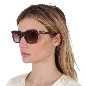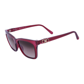 Salvatore Ferragamo Sunglasses. Series number: SF1027S. Color code: 655. Shape: Rectangular. Lens Width: 55 mm. Lens Bridge: 16 mm. Arm Length: 140 mm. 100% UV protection. Non-Polarized. Frame Material: Plastic. Frame Color: Crystal Wine. Lenses Type: Bordeuax Gradient. Rim Style: Full-Rim. UPC/EAN code: 886895515214. Salvatore Ferragamo Bordeuax Gradient Rectangular Ladies Sunglasses SF1027S 655 55.