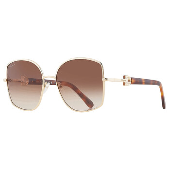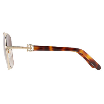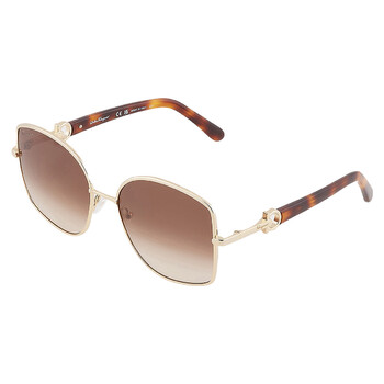 Salvatore Ferragamo Sunglasses. Series number: SF304S. Color code: 745. Shape: Butterfly. Lens Width: 58 mm. Lens Bridge: 18 mm. Arm Length: 140 mm. 100% UV protection. Non-Polarized. Frame Material: Metal. Frame Color: Gold/Havana. Lenses Type: Brown Gradient. Rim Style: Full-Rim. UPC/EAN code: 886895582063. Salvatore Ferragamo Brown Gradient Butterfly Ladies Sunglasses SF304S 745 58.