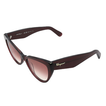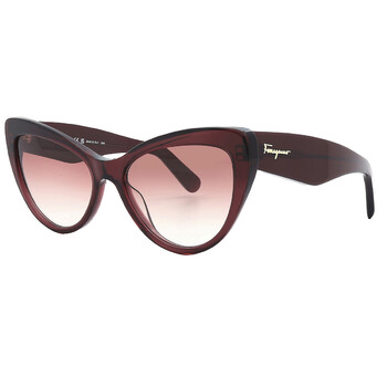 Salvatore Ferragamo Sunglasses. Series number: SF930S. Color code: 606. Shape: Butterfly. Lens Width: 56 mm. Lens Bridge: 17 mm. Arm Length: 145 mm. 100% UV protection. Non-Polarized. Frame Material: Plastic. Frame Color: Wine. Lenses Type: Burgundy Gradient. Rim Style: Full-Rim. UPC/EAN code: 886895387705. Salvatore Ferragamo Burgundy Gradient Butterfly Ladies Sunglasses SF930S 606 56.