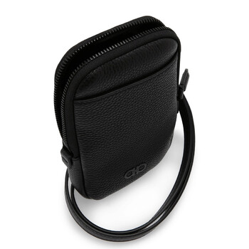 Salvatore Ferragamo Men's Pouch. SKU: 66A344 705230. Barcode: 8056744690528. Color: Black. Size: W 4.5" x H 7.1" x D 0.8". Salvatore Ferragamo Gancini Leather Pouch With Strap. Made in Italy.