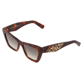 Salvatore Ferragamo Sunglasses. Series number: SF1081SE. Color code: 214. Shape: Cat Eye. Lens Width: 55 mm. Lens Bridge: 17 mm. Arm Length: 145 mm. 100% UV protection. Non-Polarized. Frame Material: Plastic. Frame Color: Tortoise. Lenses Type: Grey Gradient. Rim Style: Full-Rim. UPC/EAN code: 886895585712. Salvatore Ferragamo Grey Gradient Cat Eye Ladies Sunglasses SF1081SE 214 55.