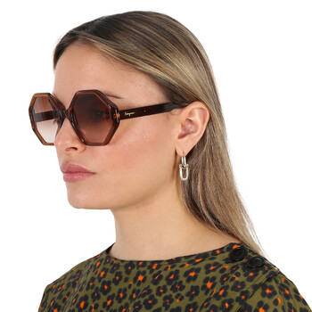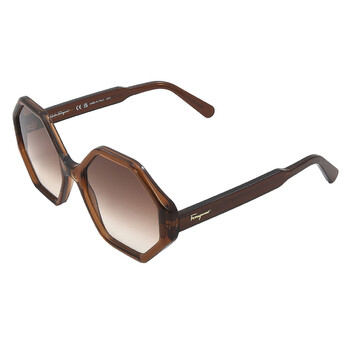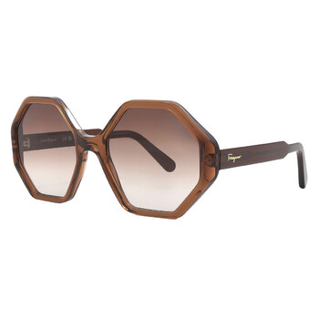 Salvatore Ferragamo Sunglasses. Color code: 210. Shape: Geometric. Lens Width: 55 mm. Lens Bridge: 20 mm. Arm Length: 140 mm. 100% UV protection. Non-Polarized. Frame Material: Acetate. Frame Color: Crystal Brown. Lenses Type: Grey Gradient. Rim Style: Full-Rim. UPC/EAN code: 886895558815. Salvatore Ferragamo Grey Gradient Geometric Ladies Sunglasses SF1070S 210 55.