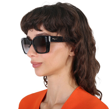Salvatore Ferragamo Sunglasses. Color code: 001. Shape: Square. Lens Width: 55 mm. Lens Bridge: 16 mm. Arm Length: 145 mm. 100% UV protection. Non-Polarized. Frame Material: Plastic. Frame Color: Black. Lenses Type: Grey Gradient. Rim Style: Full-Rim. UPC/EAN code: 886895524704. Salvatore Ferragamo Grey Gradient Square Ladies Sunglasses SF1042S 001 55.