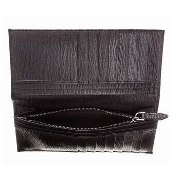 Salvatore Ferragamo Men's Wallets. SKU: 669771 588663. Color: Black. Size: H: 18.5 cm x L: 9.5 cm. Salvatore Ferragamo Men's Black Leather Organizer Wallet. This black hammered calfskin wallet features a flap closure, multiple interior slots, bill compartments, a zip coin pocket, and embellished with a metal logo plaque on the front. Made in Italy.