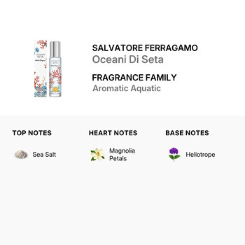 This Eau de Parfum comes in a convenient 0.5 oz spray, ideal for travel or on-the-go freshness. It’s a part of Salvatore Ferragamo’s luxurious fragrance collection, designed in Italy and inspired by the brand’s rich heritage in fashion and style. Whether you're heading to the office or enjoying a weekend getaway, Oceani Di Seta brings a wave of calm and confidence to every moment.