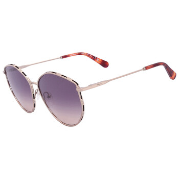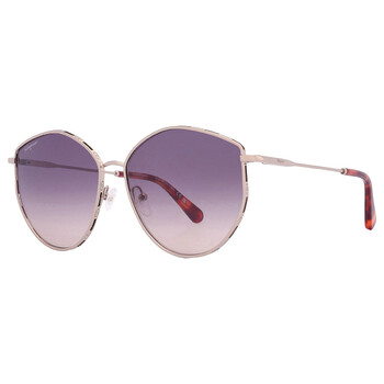 Salvatore Ferragamo Sunglasses. Series number: SF264S. Color code: 754. Shape: Irregular. Lens Width: 60 mm. Lens Bridge: 15 mm. Arm Length: 140 mm. 100% UV protection. Non-Polarized. Frame Material: Metal. Frame Color: Rose Gold / Peach. Lenses Type: Violet Gradient. Rim Style: Full-Rim. UPC/EAN code: 886895489959. Salvatore Ferragamo Violet Gradient Irregular Ladies Sunglasses SF264S 754 60.