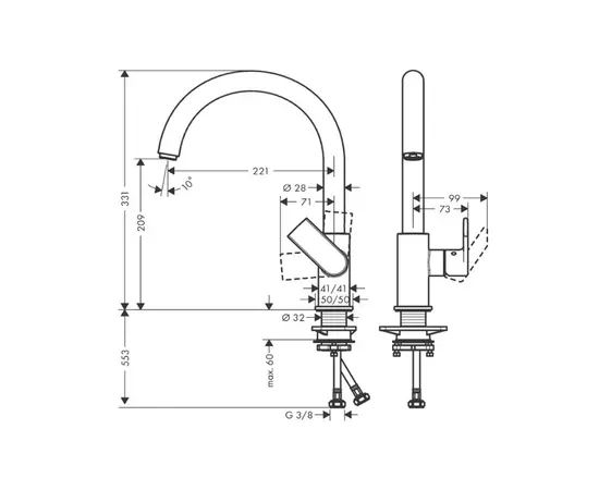 სამზარეულოს შემრევი Hansgrohe 71871670 (შავი) გამოირჩევა ელეგანტური დიზაინით და ერგონომიული ფუნქციონალით. 331 მმ სიმაღლე და 221 მმ სიღრმე უზრუნველყოფს მოხერხებულ გამოყენებას ყოველდღიურ სამზარეულოს სამუშაოებში. 41 მმ დიამეტრი და G 3/8 მიერთება იძლევა მარტივ მონტაჟს და თავსებადობას უმეტესობა სტანდარტულ ნიჟარებთან.