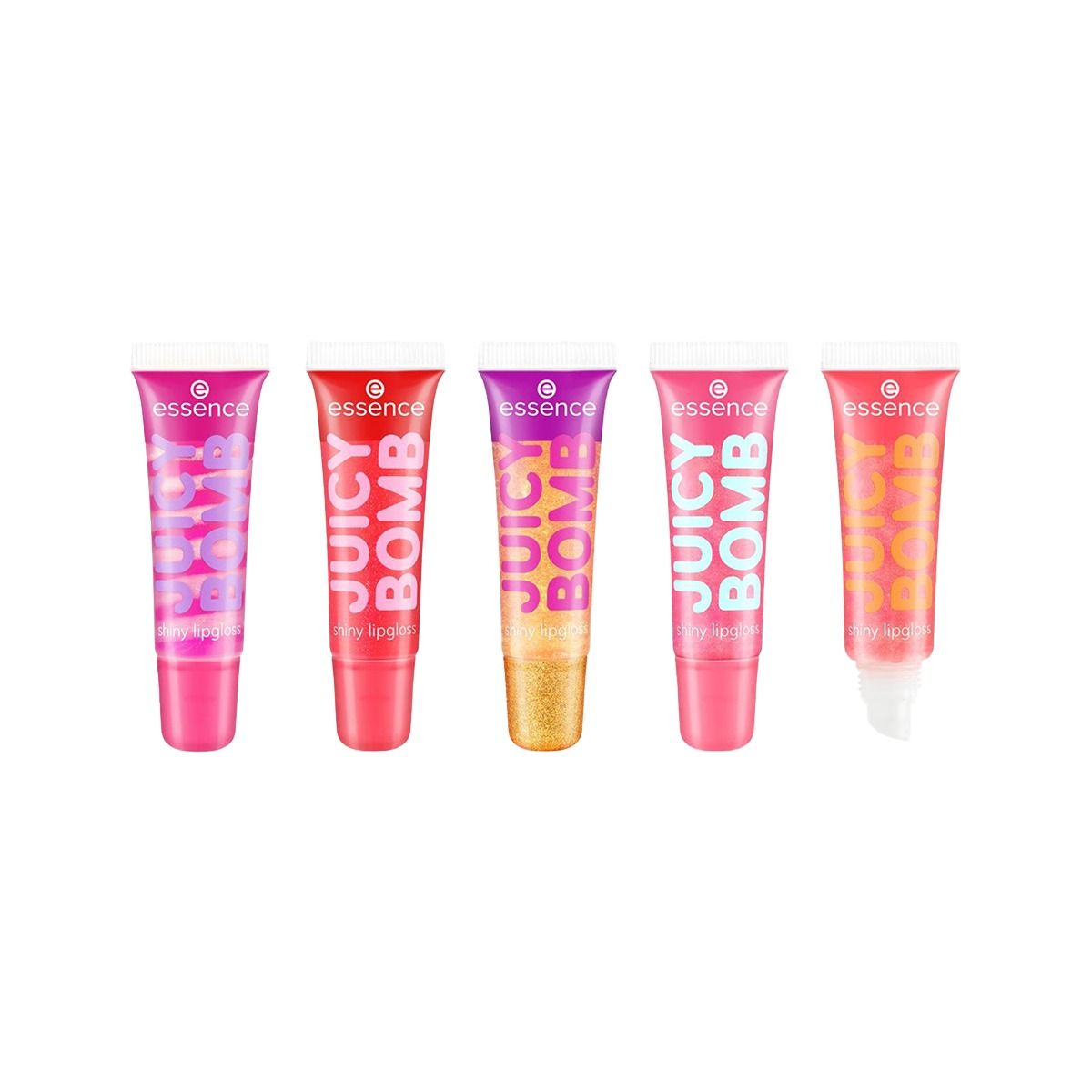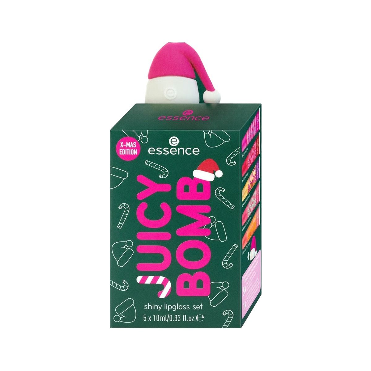 Essence JUICY BOMB Xmas edition მბზინავი ტუჩის გლოსის ნაკრები შეიცავს ხუთ ულტრა-მბზინავ და არაწებოვან ერთეულს!