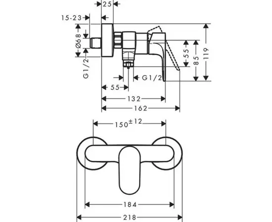 საშხაპე შემრევი Hansgrohe 72640670 (შავი) გამოირჩევა დახვეწილი და თანამედროვე დიზაინით. აქვს G1/2" შეერთება და ცენტრებს შორის 150 ±12 მმ დაშორება. ზომები: სიგანე 218 მმ, სიღრმე 162 მმ, სიმაღლე 119 მმ — გამორჩეულია სანდოობითა და თანამედროვე სტილით.