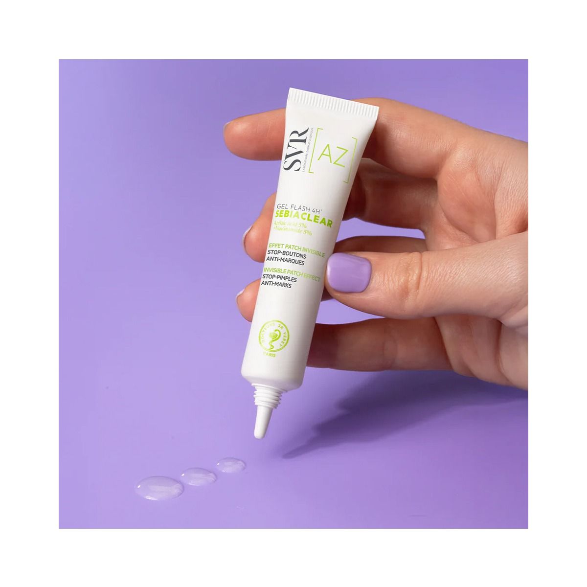 უხილავი, მიზანმიმართული, პაჩის ეფექტის მქონე გელი, რომელიც შეიცავს 5%-იან აზელაინის მჟავას და 5%-იან ნიაცინამიდს, ეფექტურია ლაქების წინააღმდეგ სულ რაღაც 4 საათში, კომბინირებული და ცხიმიანი, ასევე მგრძნობიარე კანისთვის. Sebiaclear Flash 4H გელი ამცირებს ლაქებსა და სიწითლეს და ხელს უშლის აკნეს შემდგომი ლაქების გაჩენას. მისი პაჩის ეფექტის მქონე გელის ტექნოლოგია ქმნის უხილავ, ოკლუზიურ აპკს, რომელიც იცავს კანს გაღიზიანებისა და ნაკაწრებისგან. იდეალურია ნებისმიერი სიმძიმის აკნესთვის, მგრძნობიარე კანისთვის. შესაფერისია ორსული და მეძუძური ქალებისთვის. გამოიყენება 10 წლის ასაკიდან. უსაფრთხოა ორსული და მეძუძური ქალებისთვის.