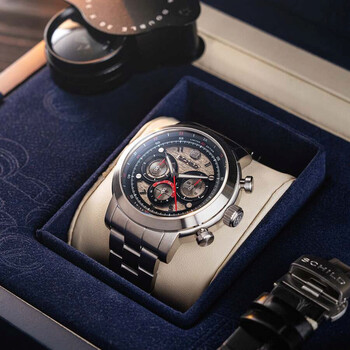 Witness precision and style with the Heinrich Swiss Multifunction timepiece. Crafted with a Swiss movement and perfectly sized at 44mm, it is a limited edition of only 250 pieces and comes with a complimentary leather strap. Enjoy a harmonious blend of exquisite craftsmanship and timeless elegance. Silver-tone stainless steel case and bracelet. Fixed silver-tone stainless steel bezel. Grey dial with black hands and index hour markers. Minute markers around the outer rim. Dial Type: Analog. Luminescent hands. Three sub-dials displaying: date, day and 24 hour. ISA Caliber 9238 quartz movement. Scratch resistant sapphire crystal. Screw down crown. Solid case back. Round case shape, case size: 44 mm, case thickness: 14 mm. Band width: 20 mm, band length: 8 inches. Fold over clasp with a safety release. Water resistant at 100 meters / 330 feet. Functions: date, day, GMT, second time zone, hour, minute, second. Heinrich Series. Casual watch style. Watch label: Swiss Movement. Schild Heinrich GMT Quartz Grey Dial Men's Watch SC-1005-11.