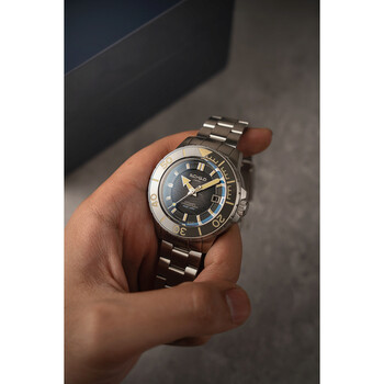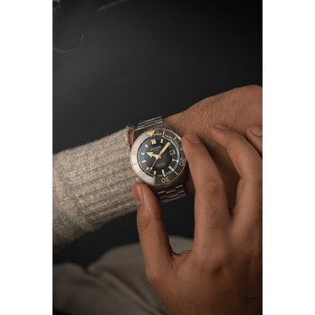 Silver-tone stainless steel case and bracelet. Uni-directional rotating black stainless steel bezel. Grey dial with silver-tone hands and index hour markers. Dial Type: Analog. Luminescent hands and markers. Date display at the 3 o'clock position. AS - 5203 automatic movement. Screw down crown. Solid case back. Round case shape, case size: 43 mm, case thickness: 15 mm. Band width: 20 mm, band length: 8 inches. Deployment with push button release clasp. Water resistant at 200 meters / 660 feet. Functions: date, hour, minute, second. Hermann Series. Casual watch style. Watch label: Swiss Made. Schild Hermann Automatic Grey Dial Men's Watch SC-1016-66.