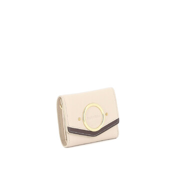 See By Chloe Ladies Wallets. SKU: CHS19AP88856524H. Color: Cement Beige. Size: W 4.33 x H 3.54 x D 0.79 inches. Aura Small Trifold Wallet is a stylish and compact accessory, perfect for everyday elegance. Crafted from high-quality pebbled leather, this wallet features a sophisticated gold-tone metal ring detail on the front, complemented by leather trim and contrast stitching. The snap-button closure ensures security, while the interior unfolds to reveal multiple compartments for cards, cash, and essentials. The subtle embossed See by Chloe logo adds a refined touch, making this wallet both fashionable and functional. 100% Leather.