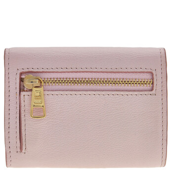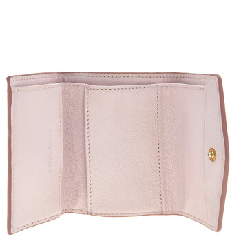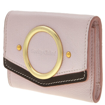 See By Chloe Ladies Wallets. SKU: CHS19AP8885656F2. Color: Pink. Size: W 4.33 x H 3.54 x D 0.79 inches. Aura Small Trifold Wallet is a stylish and compact accessory, perfect for everyday elegance. Crafted from high-quality pebbled leather, this wallet features a sophisticated gold-tone metal ring detail on the front, complemented by leather trim and contrast stitching. The snap-button closure ensures security, while the interior unfolds to reveal multiple compartments for cards, cash, and essentials. The subtle embossed See by Chloe logo adds a refined touch, making this wallet both fashionable and functional. 100% Leather.