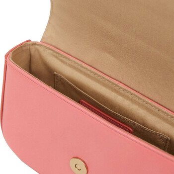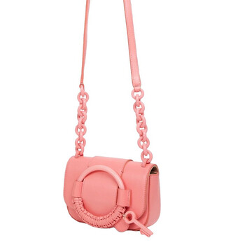 See By Chloe Ladies Shoulder Bag. SKU: CHS23USB79D026N3. Color: Pink. Size: Width: 7.5" x Height: 5.5" x Depth: 3.3”. See by Chloe Hana Chain Shoulder Bag. The Hana Chain Bag in smooth cowhide leather offers a sleek monochrome design with a spacious main compartment. Designed for cross-body or long shoulder wear, it features a magnetic flap closure, an interior flat pocket, and a chain and leather strap for versatile styling. A tonal braided O-ring, adorned with a keychain and the See By Chloe medal, adds a signature touch, while gold brass hardware completes the elegant finish. Material: Leather.