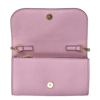 See By Chloe Ladies Wallets. SKU: CHS20SP912305599. Color: Mist. Size: Height: 11cm x Width: 19cm x Depth: 3cm. See by Chloe Hana Chain Wallet. The Leather Hana Chain Wallet by See By Chloe features a sleek fold-over top with a secure magnetic closure. Designed for both style and functionality, it includes a chain-link shoulder strap, an internal zip pocket, and a signature braided O-ring adorned with a chain and the iconic See By Chloe medal. Material; 100% Goat Leather.