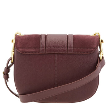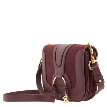 See By Chloe Ladies Shoulder Bag. SKU: CHS18AS89641725D. Color: Brown. Size: 8.7"W x 2.8"D x 7.1"H. The Hana shoulder bag, crafted from cowhide and suede cowhide, features a thin adjustable strap for cross-body or long shoulder wear, a magnetic snap button closure, two large compartments, a central flat compartment, a card slot, and a removable strap, accented with a braided gold brass O-ring, gold brass finish, and a cotton canvas lining. Max. strap length: 21.3". Material: Leather, Suede.