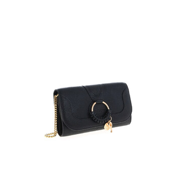 See By Chloe Ladies Wallets. Hana series. SKU: CHS20SP912305001. Color: Black. Size: 11 x 19 cm. See By Chloe Hana Leather Chain Wallet. The ‘Hana’ wallet from See By Chloe is expertly crafted from luxurious goat leather. Designed with both style and functionality in mind, it features a flap closure with a magnetic snap, a signature braided leather ring adorned with logo charms, and elegant gold-tone metal hardware. The detachable chain adds versatility, while the interior offers practical storage with a dedicated phone compartment, a zip pocket, and a card slot.