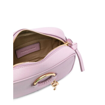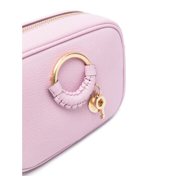 See By Chloe Ladies Crossbody. Hana series. SKU: CHS23ASC18305599. Color: Viola. Size: W 6.2" x H 4.3" x D 2.3". See By Chloe Hana Mini Leather Crossbody Bag. Crafted from pebbled calf leather, the Hana crossbody bag showcases a braided ring, gold-tone logo plaque, and key charm. It includes a detachable shoulder strap, a top zip closure, a roomy main compartment with cotton lining, and an internal patch pocket. Outer: Calf Leather 100%.
