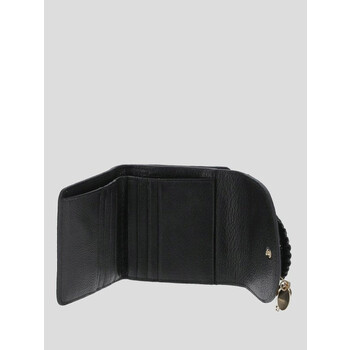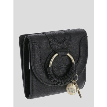 See By Chloe Ladies Wallets. SKU: CHS20AP923305001. Color: Black. Size: W 4.1" x H 3.9" x D 1.2". See By Chloe Hana Square Leather Compact Wallet. The Hana square small wallet in grained goatskin features a snap button closure, a signature gold brass O-ring with a braided detail, a key chain with a gold-tone medal engraved with the "See by Chloe" logo, eight card slots, a bill compartment, an exterior zippered pocket, and a cotton canvas lining. 100% Leather.