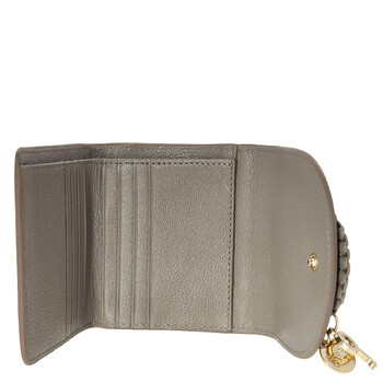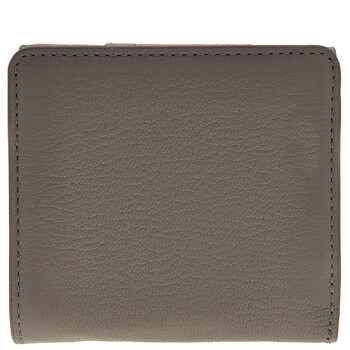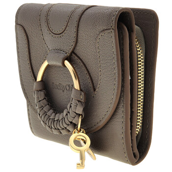 See By Chloe Ladies Wallets. SKU: CHS20AP92330523W. Color: Grey. Size: W 4.1" x H 3.9" x D 1.2". The Hana square small wallet in grained goatskin features a snap button closure, a signature gold brass O-ring with a braided detail, a key chain with a gold-tone medal engraved with the "See by Chloe" logo, eight card slots, a bill compartment, an exterior zippered pocket, and a cotton canvas lining. 100% Leather.