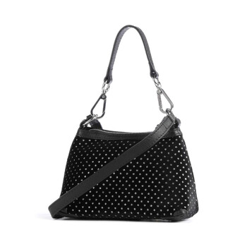 See By Chloe Ladies Crossbody. SKU: CHS24SS975D46001. Barcode: 7614027150926. Color: Black. Size: W18 x H13 x D9 cm. See by Chloe Joan Crystal Embellished Crossbody Bag. The See by Chloe Joan Crossbody Bag is a stylish and versatile accessory featuring a suede-like material adorned with shimmering embellishments for a touch of elegance. Its signature metal ring with a braided leather detail adds a distinctive brand aesthetic, while the combination of a structured top handle and a detachable crossbody strap offers multiple carrying options. Designed for both style and practicality, the bag includes a front flap pocket and a spacious main compartment, making it perfect for everyday wear with a hint of glamour.