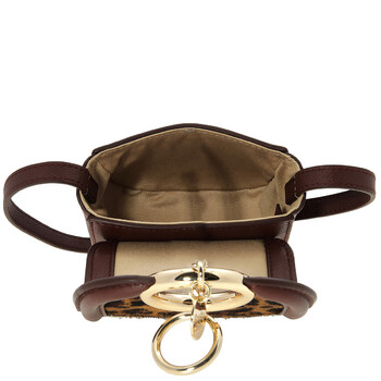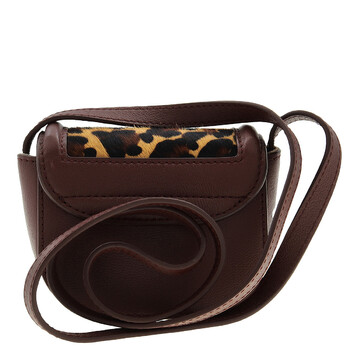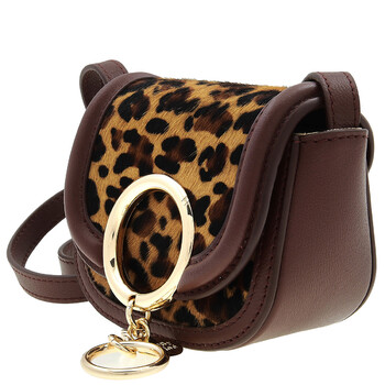 See By Chloe Ladies Shoulder Bag. SKU: CHS23WPB26E0326H. Color: Dreamy Red. Size: W 5.1" x H 4.1" x D 3.1". The Mara micro crossbody bag in leopard-print pony leather and cowhide exudes a confident yet playful attitude, featuring a compact design ideal for carrying cards and small essentials, a magnetic snap button closure, a non-adjustable strap with a 19.7" gold chain detail, and the signature oversized ring adorned with a "See By Chloe" medal.