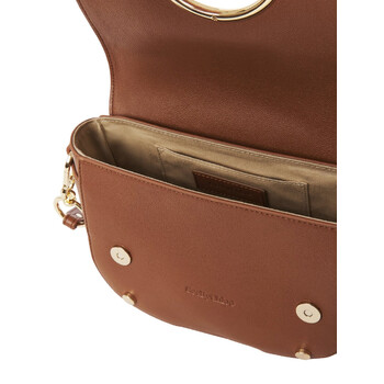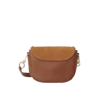 See By Chloe Ladies Crossbody. SKU: CHS20ASA29820242. Color: Caramel. Size: W 8.7" x H 7.1" x D 3.5". See By Chloe Mara Suede and Cowhide Crossbody Bag. Crafted from suede and small grain cowhide, features an elegant rounded shape adorned with an oversized ring and the signature See by Chloe medal. Designed for versatility, it offers both cross-body and long shoulder carrying options with an adjustable, removable strap. The bag secures with a magnetic closure and includes a spacious main compartment along with a flat interior card slot. Finished with light gold hardware and a "See by Chloe" embossed logo, it is lined with 100% cotton canvas. The strap adjusts from a minimum drop of 21.1" (53.5 cm) to a maximum drop of 23" (58.5 cm).
