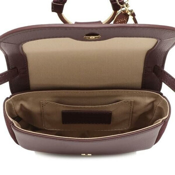 See By Chloe Ladies Shoulder Bag. SKU: CHS18AS90141725D. Color: Dusky Brown. Size: 19 cm x 17 cm x 5 cm. The Mini Hana shoulder bag showcases grained calfskin and suede, featuring a thin adjustable strap, a large braided O-ring, a keychain, and the signature See by Chloe medal, along with an internal card slot, cotton canvas lining, and a magnetic top closure.