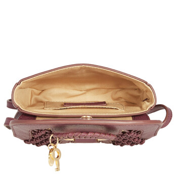 See By Chloe Ladies Shoulder Bag. SKU: CHS23AS901D6955X. Size: W 7.1" x H 5.5" x D 2". The Hana mini bag, crafted from grained cowhide deadstock with fishnet detail, exudes a Parisian attitude and features a feminine braided gold brass O-ring with a key chain and the signature See by Chloe medal; designed for cross-body or long shoulder wear, it includes a magnetic snap button closure, a main compartment with an internal flat pocket, an adjustable strap, and a cotton canvas lining, with a strap length ranging from 18.9" (48 cm) to 21.3" (54 cm).
