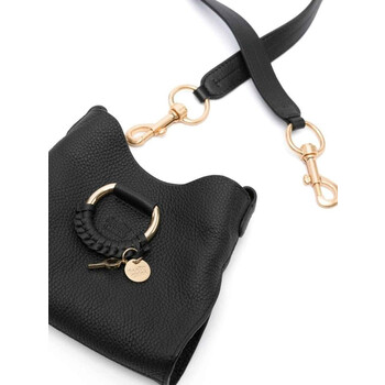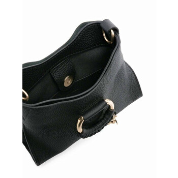 See By Chloe Ladies Top Handle Bag. Joan series. SKU: CHS24SSC25D30001. Color: Black. Size: W 7.5" x H 5.5" x D 2.4". See By Chloe Mini Joan Leather Top Handle Bag. Crafted from grained goatskin, features a compact silhouette with a slouchy handle and a removable, adjustable strap for versatile carrying options—cross-body, long shoulder, finger, or hand. It is designed with a snap button closure, a flat inside pocket, and a cotton canvas lining, while the signature feminine braided O-ring showcases the See by Chloe key and medal. Max. strap drop: 20.5" (52 cm). Material: Goatskin.