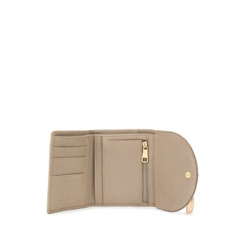 See By Chloe Ladies Wallets. SKU: CHS19UP866. Color: Grey. Size: W 11.5 cm x H 9 cm. See By Chloe Small Hana Compact Wallet. Crafted in grained goatskin, this wallet from See By Chloe features a snap button closure, a gold toned metal hardware, a cotton canvas lining, 3 interior credit card slots, 1 bill compartment, 3 flat pockets and a zip coin pocket. 100% Leather.