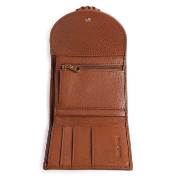 See By Chloe Ladies Wallets. SKU: CHS19UP866305242. Color: Caramel. Size: W 11.5 cm x H 9 cm. See By Chloe Small Hana Compact Wallet. Crafted in grained goatskin, this wallet from See By Chloe features a snap button closure, a gold toned metal hardware, a cotton canvas lining, 3 interior credit card slots, 1 bill compartment, 3 flat pockets and a zip coin pocket.