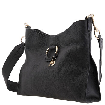 See By Chloe Ladies Top Handle Bag. SKU: CHS23USB90D30001. Color: Black. Size: W: 13.4" x H: 11.4" x D: 3.1". See By Chloe Small Joan Leather Top Handle Bag. Crafted from grained cowhide, is adorned with a signature braided O-ring with the See By Chloe key and medal, and offers versatile carrying options with a removable strap, a magnetic closure, a spacious main compartment, an interior flat pocket, and a cotton canvas lining. Material: Leather.