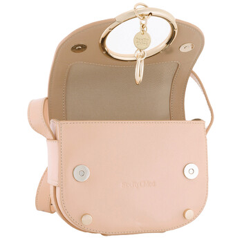 See By Chloe Ladies Crossbody. SKU: CHS24SSC19D986H2. Color: Nude. Size: W 7.1" x H 5.5" x D 2.6". The Mara small crossbody bag, crafted from glossy cowhide, features an elegant rounded silhouette with gold hardware, including an oversized ring and the signature See by Chloe medal. Designed for cross-body or long shoulder wear, it offers a magnetic closure, a spacious main compartment, an interior flat pocket, an adjustable strap, and a gold chain detai. 100% Leather.