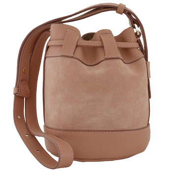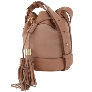 See By Chloe Ladies Bucket Bag. SKU: CHS23ASC133306I3. Color: Coffeepi. Size: W: 5.9" x H: 7.1" x D: 5.9". See By Chloe Small Vicki Bucket Bag. The Vicki small bucket bag is crafted from grained goatskin and suede, featuring a scaled-down design with a drawstring closure, a long adjustable strap, a main compartment, a card slot, leather tassels, gold brass hardware, and a cotton canvas lining. Max. strap drop: 21.3". Material: Goatskin, Suede.