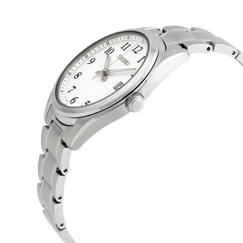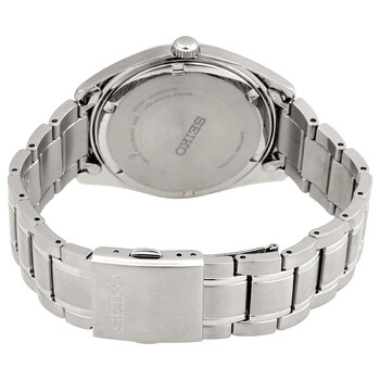 Stainless steel case with a stainless steel bracelet. Fixed stainless steel bezel. White dial with luminous silver-tone hands and Arabic numeral hour markers. Minute markers around the outer rim. Dial Type: Analog. Luminescent hands and markers. Date display at the 3 o'clock position. Quartz movement. Scratch resistant sapphire crystal. Pull / push crown. Solid case back. Round case shape. Case size: 40 mm. Case thickness: 8 mm. Band width: 18 mm. Fold over clasp with a push button release. Water resistant at 100 meters / 330 feet. Functions: date, hour, minute, second. Core Series. Casual watch style. Watch label: Japan Movt. Seiko Core Quartz White Dial Men's Watch SUR459P1.