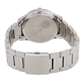 Silver-tone stainless steel case and bracelet. Fixed silver-tone stainless steel bezel. Black dial with silver-tone hands and index hour markers. Minute markers around the outer rim. Dial Type: Analog. Luminescent hands. Date display at the o'clock position. Quartz movement. Scratch resistant sapphire crystal. Solid case back. Round case shape, case size: 38.5 mm. Deployment with push button release clasp. Water resistant at 100 meters / 330 feet. Functions: date, hour, minute, second. Sport watch style. Watch label: Japan Made. Seiko Quartz Black Dial Men's Watch SUR559P1.